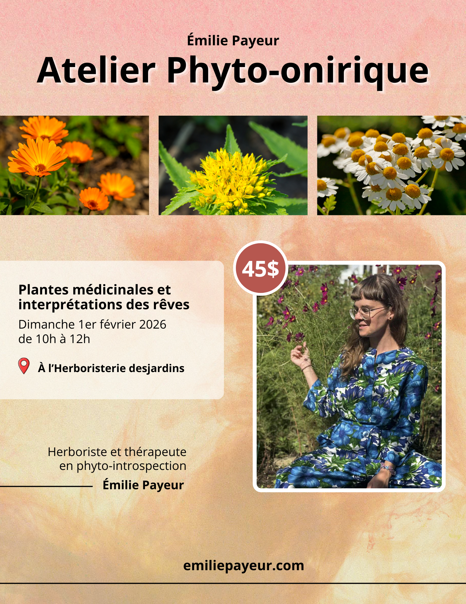 Émilie Payeur est herboriste et accompagnante en exploration intérieure. Sa pratique relie le monde des plantes médicinales à celui de l’inconscient et des rêves, dans une approche douce, profonde et respectueuse du rythme de chacun.